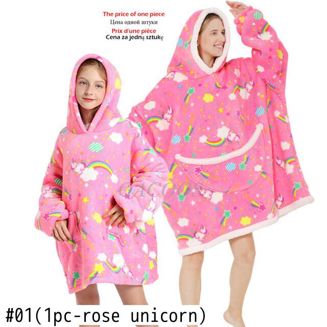 新作 冬暖かいホームウェアママ娘服シェルパブランケットファミリーマッチング衣装子供女の子テレビ毛布特大フードスウェットシャツ