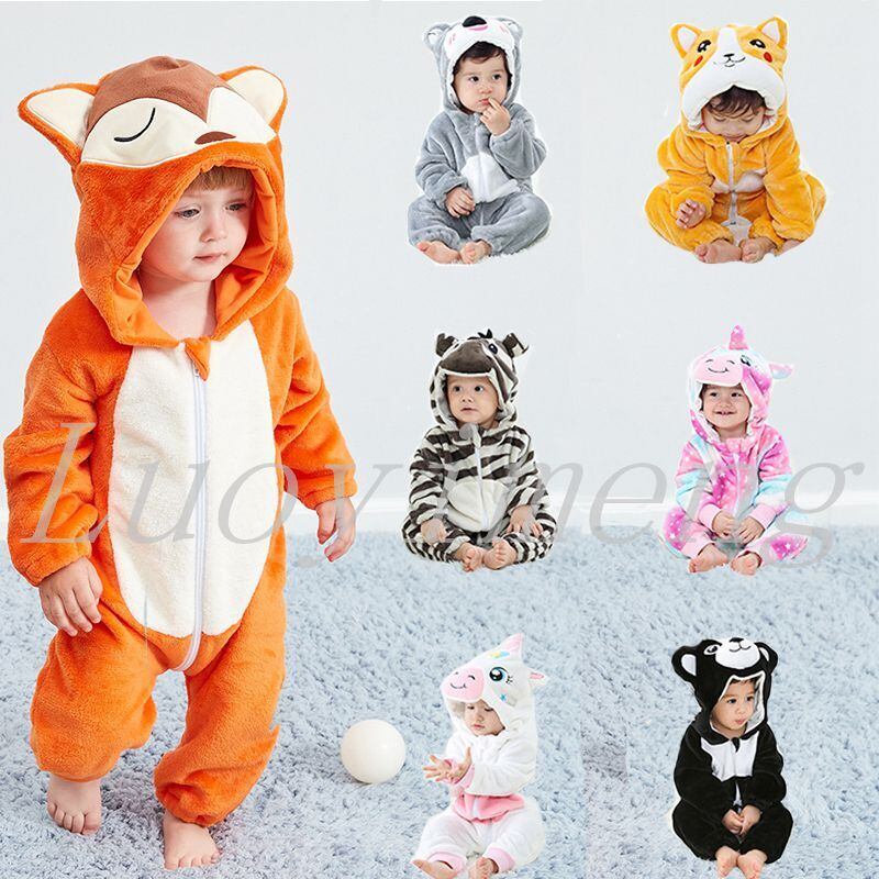 新作 子供のロンパースユニコーン犬パンダパジャマ少年少女動物フード付きジャンプスーツ衣装幼児かわいい漫画のオーバーオール