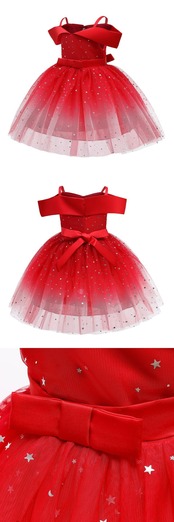 新作 2-10Y 幼児キッズベビーガールズオフショルダーパーティードレス mal スターちょう結びスクインメッシュ星空ドレスガウン 2022