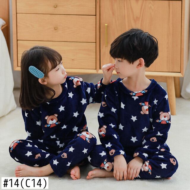 新作 十代の少年パジャマ冬厚く暖かいフランネルパジャマ幼児女の子服子供のパジャマスーツ漫画パジャマ子供セット