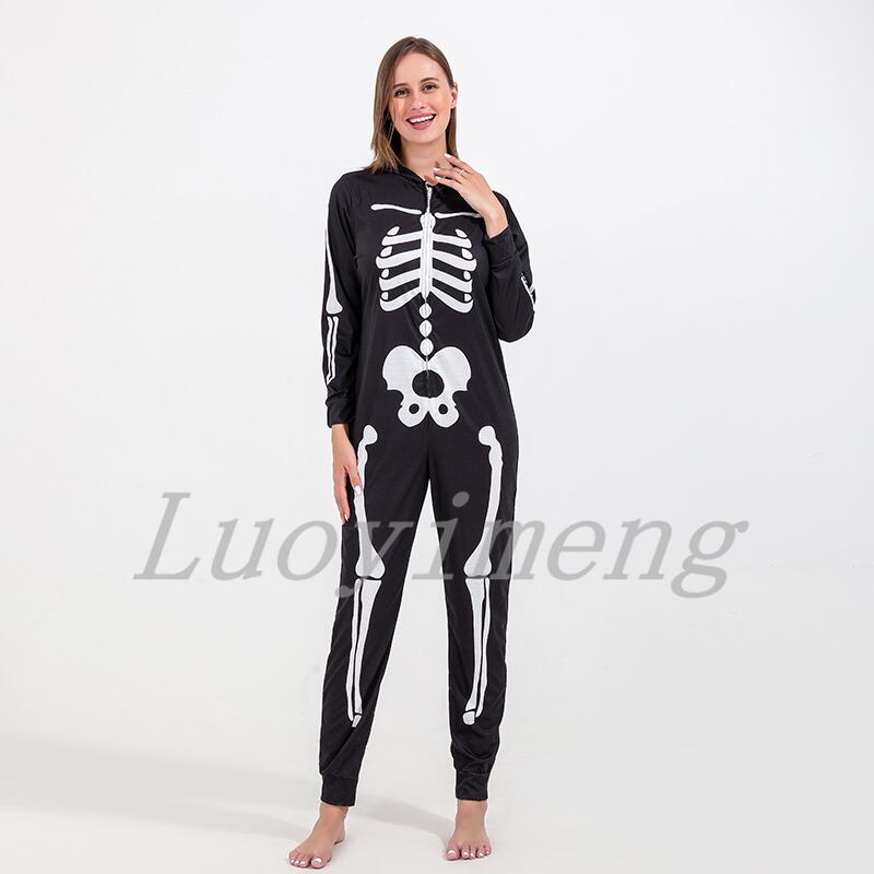 新作 怖い骸骨お父さんお母さん子供パジャマファミリースカルジャンプスーツカーニバルパーティーフード付き親子パジャマ
