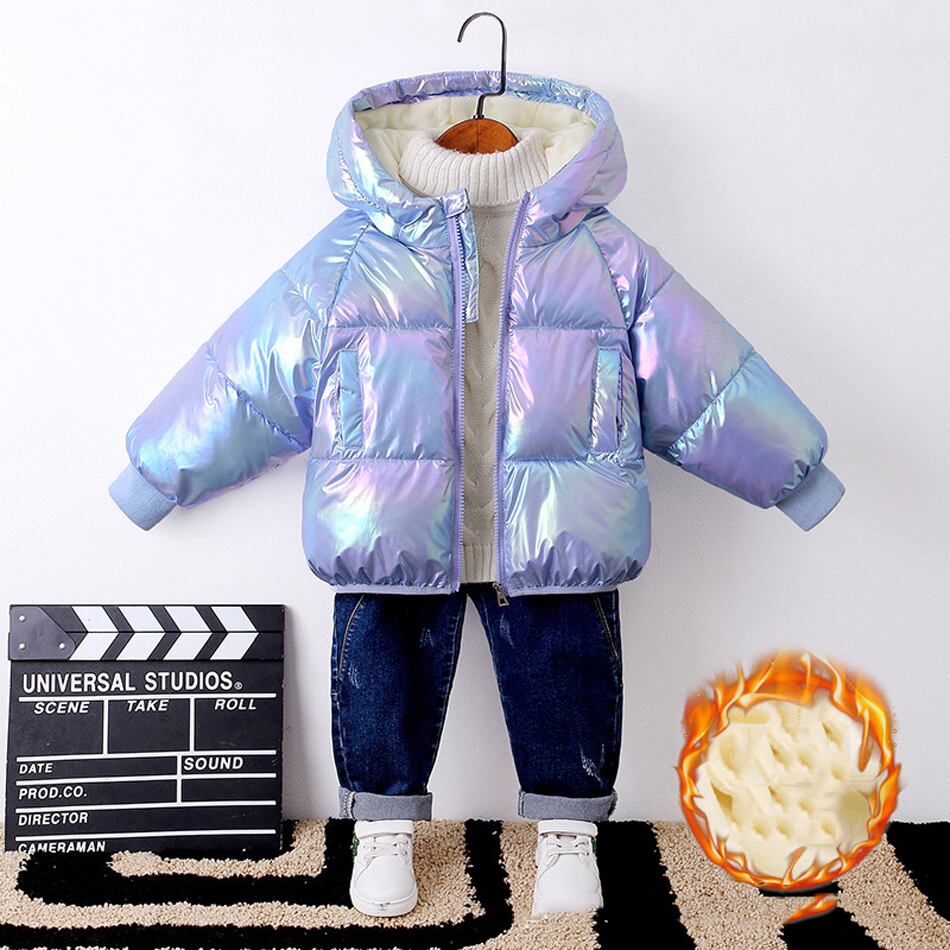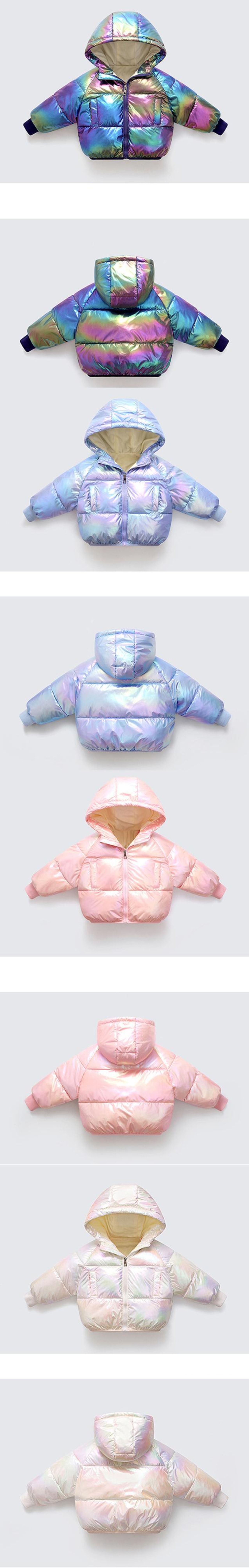 新作 キッズダウンコットンジャケットコットンパッド入り服冬の男の赤ちゃん女の子厚く暖かいコートシャイニーレーザーカラーフード付き宇宙服 1-6