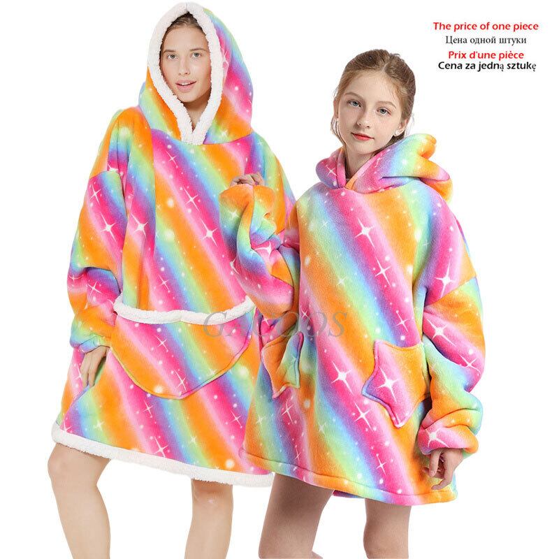 新作 家族マッチング衣装女の子特大シェルパブランケット冬フリースパーカースウェットママ子供パジャマアボカドホーム服