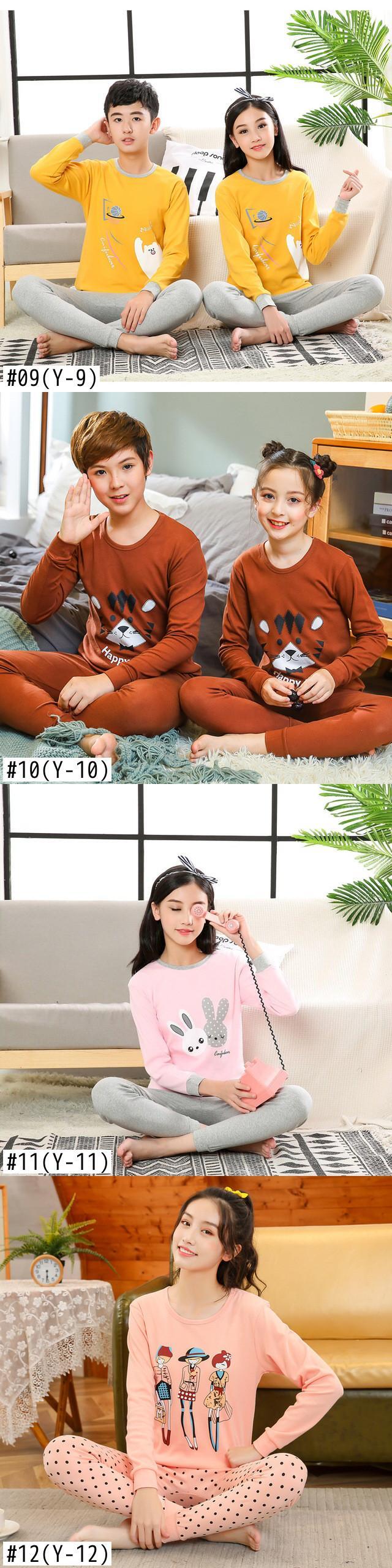 新作 男の子女の子パジャマ秋長袖子供の綿のパジャマセット子供 9-19Years パジャマナイトウェア