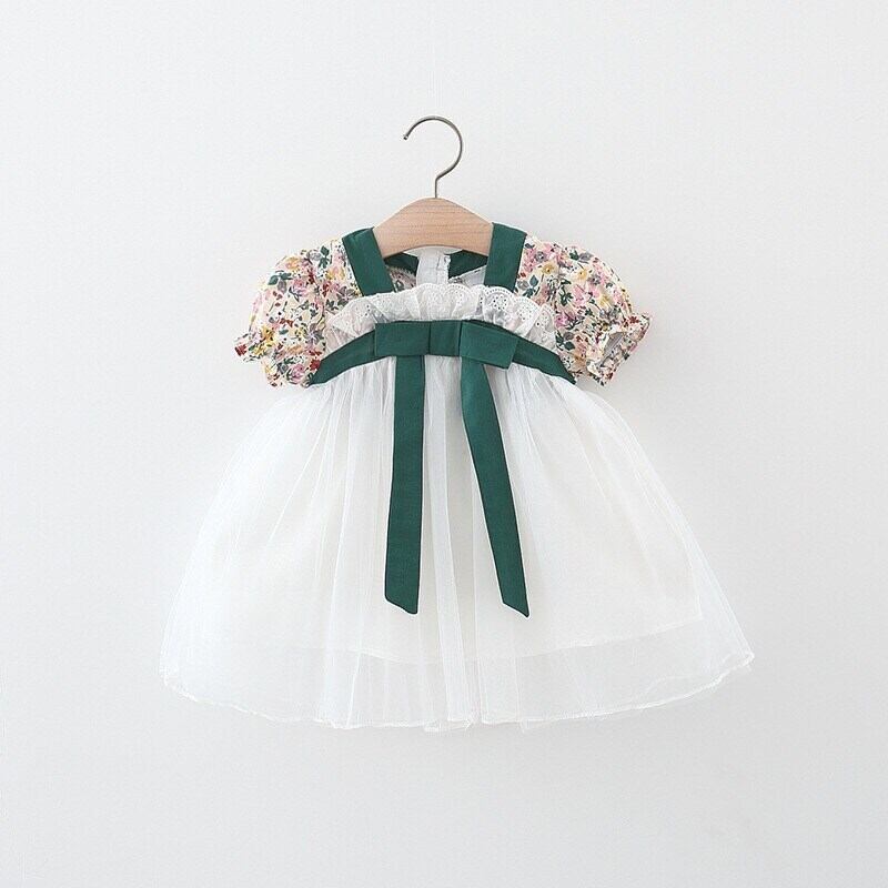 新作 夏の幼児の女の子服セットベビードレスかわいい弓花チェック柄ノースリーブコットン生まれのドレス子供のドレス