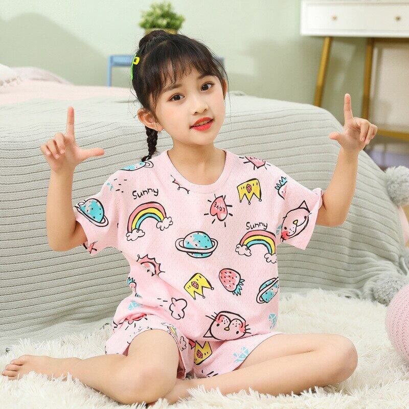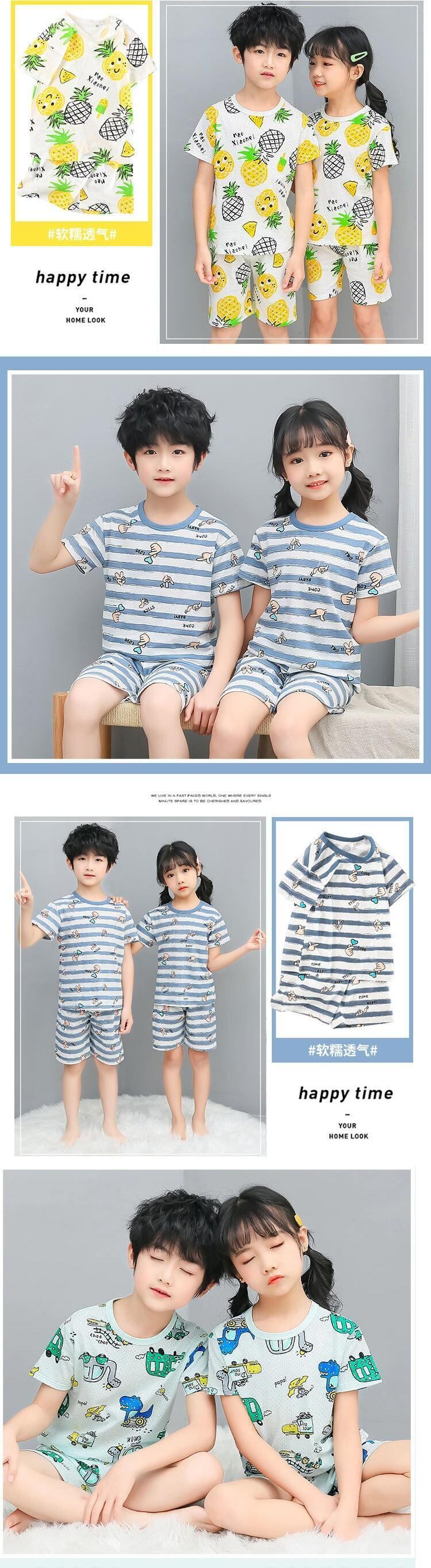 新作 女の子服子供パジャマキッズボーイズ服セットパジャマ幼児ホームウェア漫画夏パジャマ半袖コットンスーツ