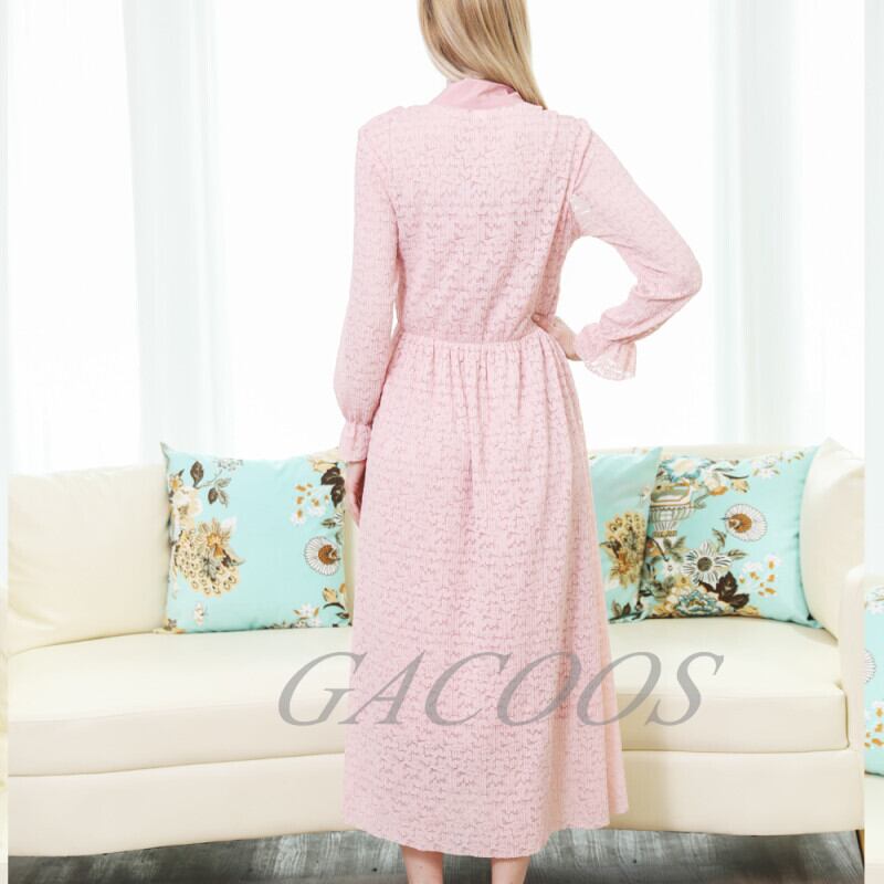 新作 ママと娘のマッチング服ロングスリーブピンクレースドレスファミリールック母娘ドレスファミリーセット子供衣装