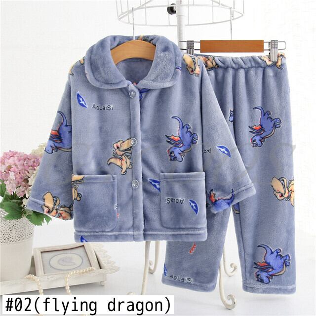 新作 キッズパジャマベビーパジャマガールズボーイズ漫画パジャマセット冬フランネル恐竜ナイトウェア長袖ホームスーツ子供