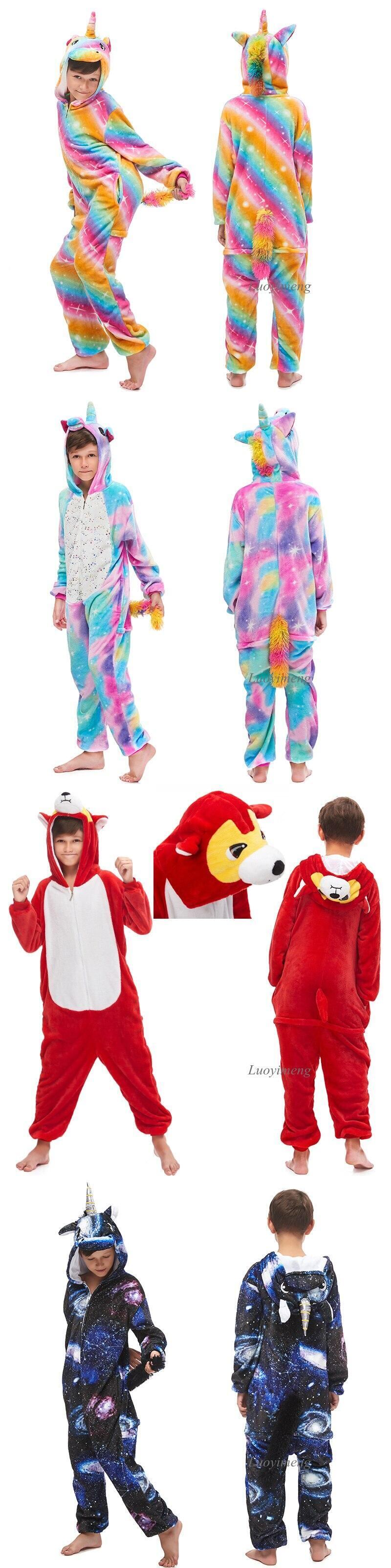 新作 子供アニマルパジャマ着ぐるみユニコーン枕木ガールボーイオーバーオール漫画カバーオール子供パジャマ冬厚いフリースブランケット