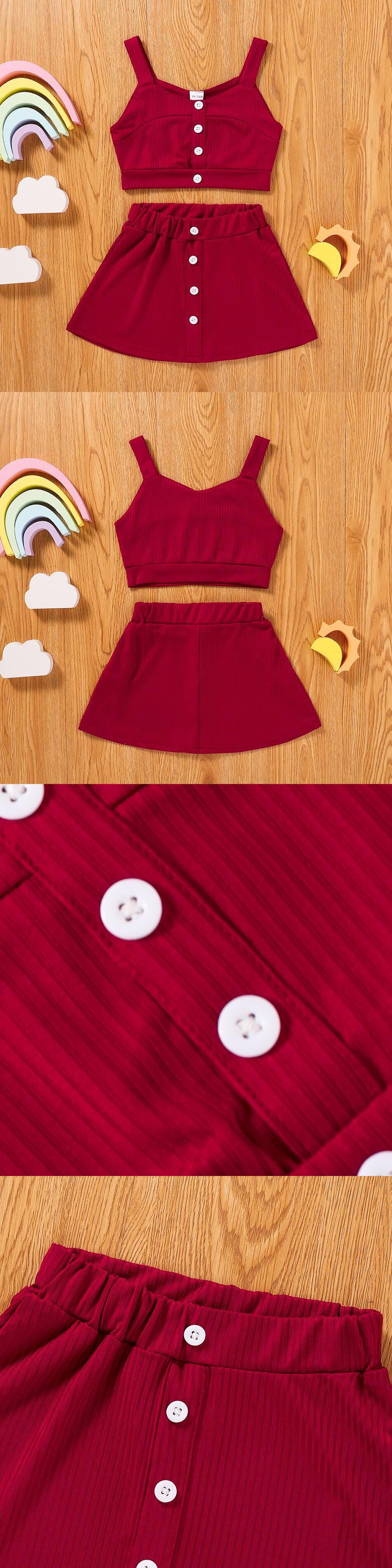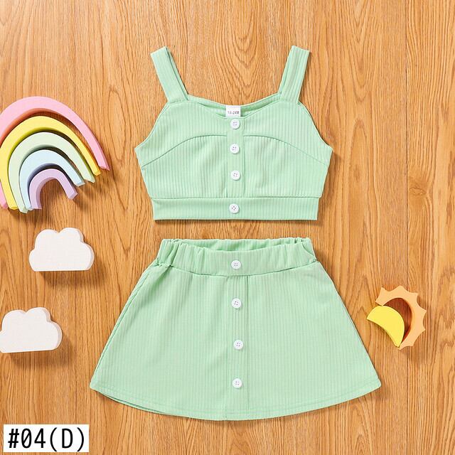新作 キッズベビーガールズサマーセットスーツチャイルドスリングクロップトップ+無地スカートクールな子供服1-6歳キッズCsotume JYF