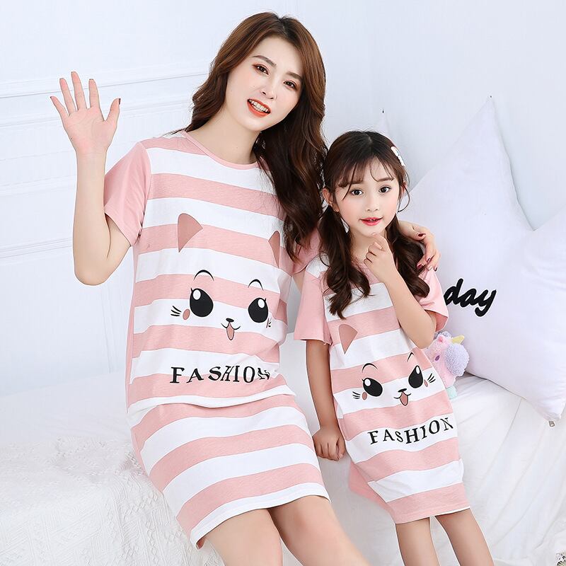 新作 漫画クマの女の子ネグリジェパジャマ子供の夏の寝間着女の赤ちゃんホーム服母子供の夜のドレスガールパジャマ
