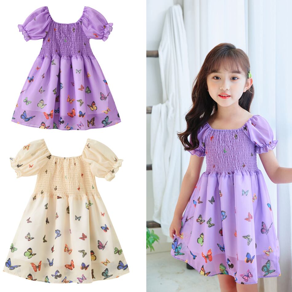 新作 2022 女の赤ちゃん服サマードレスバタフライプリント幼児子供 1-6T