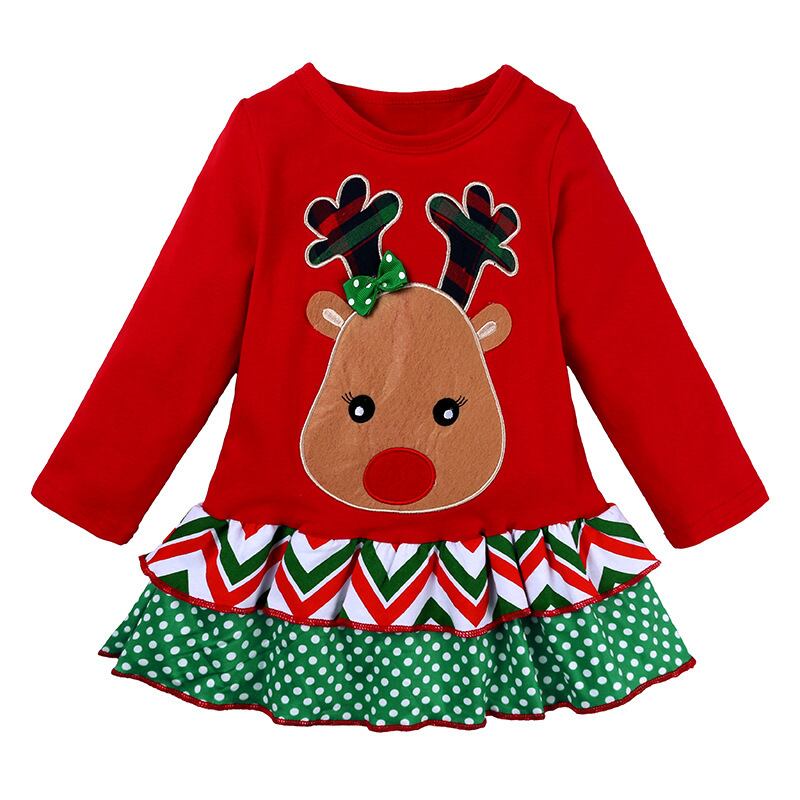 新作 子供のクリスマス子供女の子服セット冬綿クリスマス鹿 2Y 長袖ベビー服トップス + パンツ