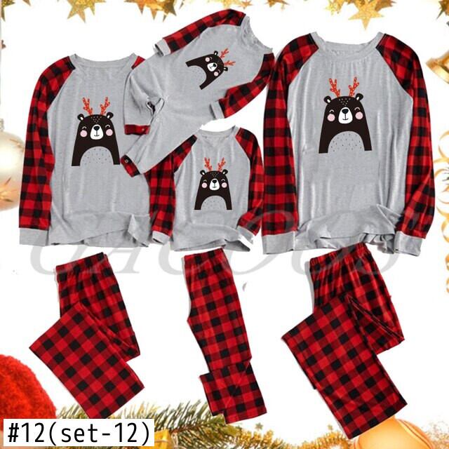 新作 クリスマスパジャマセットマッチング家族服大人子供ホームウェアベビーロンパース漫画家族マッチング衣装ナイトウェアスーツ
