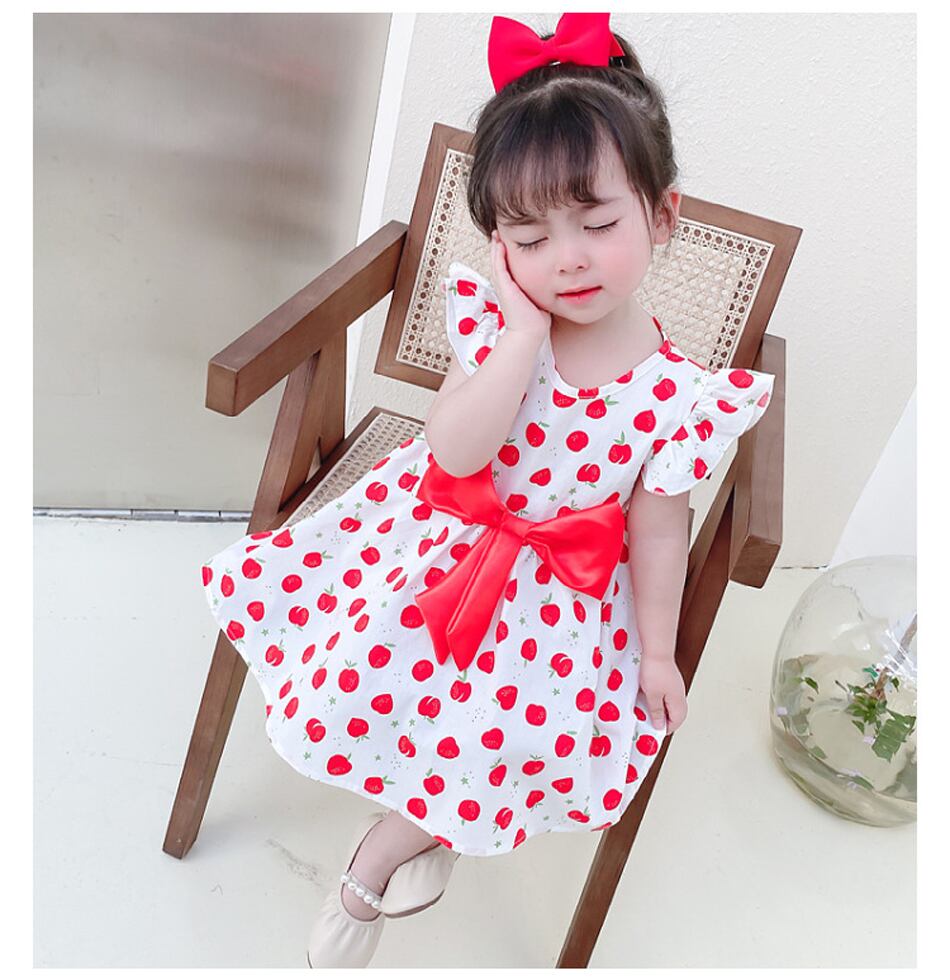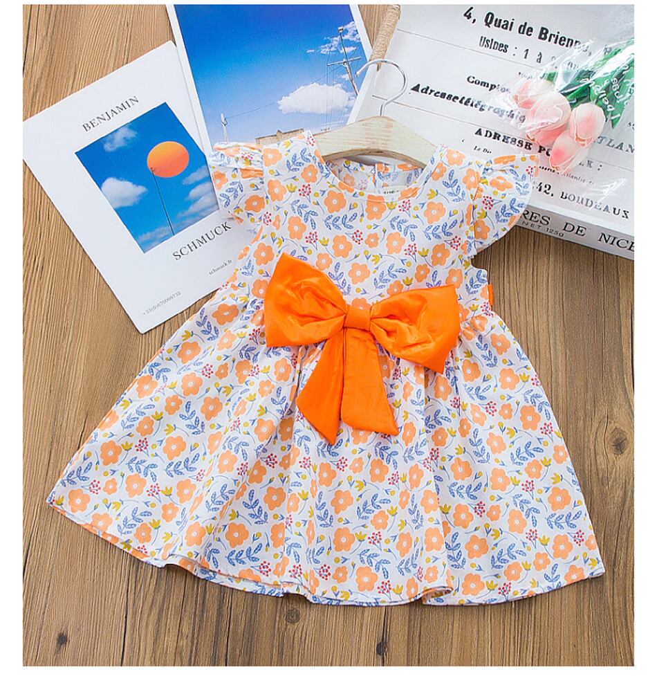 新作 ノースリーブ幼児キッズベビーガールズサマードレスちょう結び花柄ドレスパーティー Платье Для Девочки