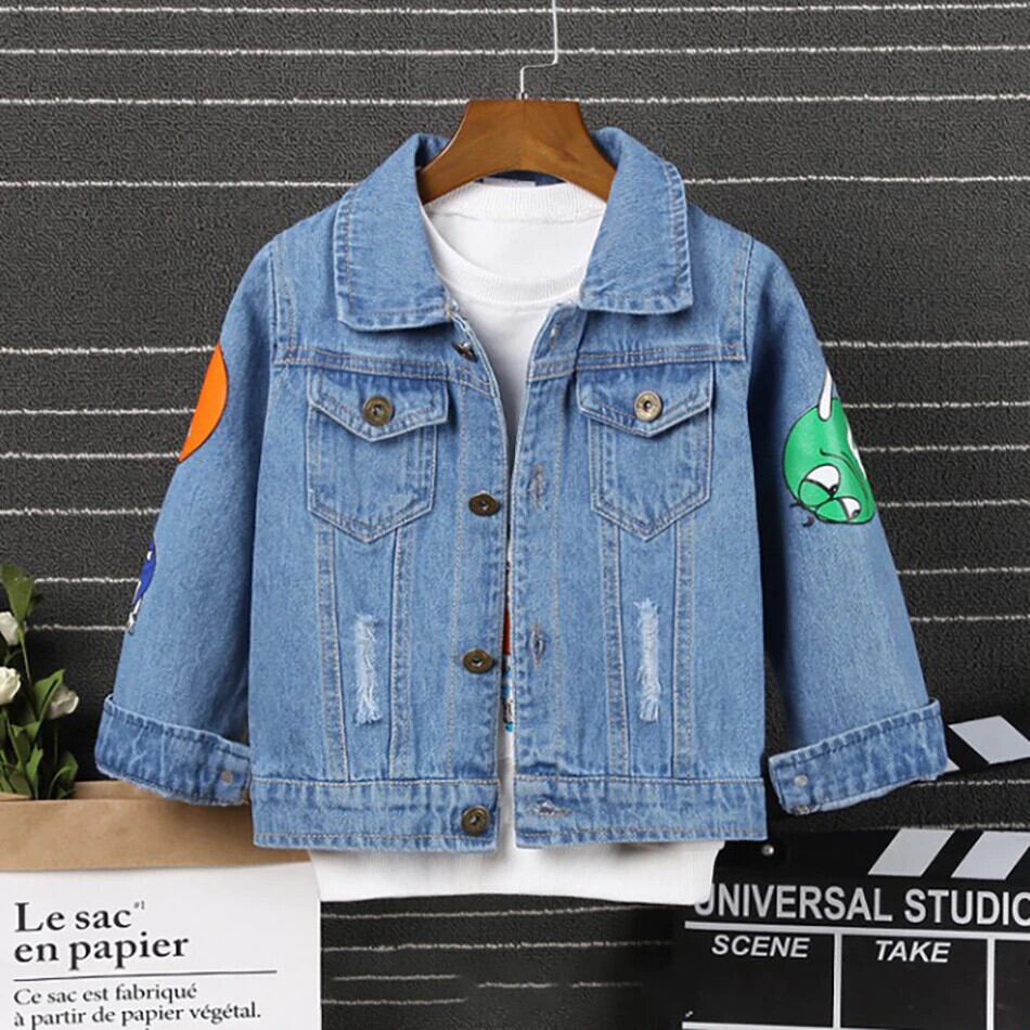 新作 MUABABY 男の赤ちゃんデニムジャケット子供の漫画のアップリケトップス秋の子供暖かい服つや消し幼児デイリーウェアルックス