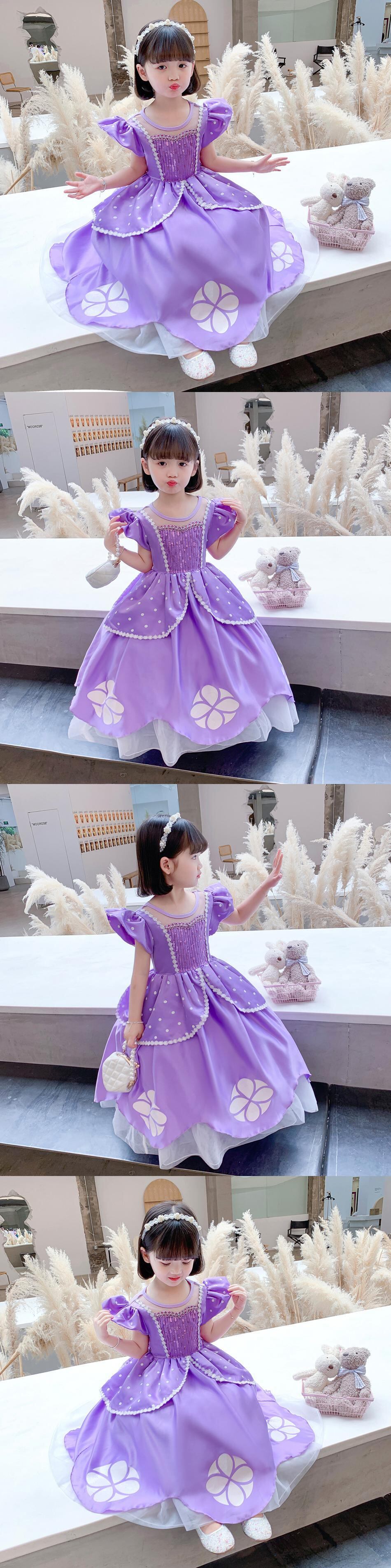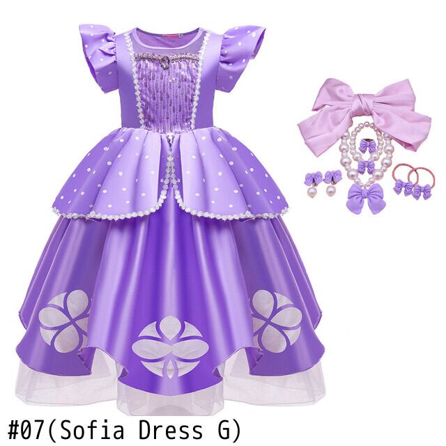 新作 ソフィア女の子の誕生日パーティードレス子供夏紫 ソフィア Vestido ベビーコスプレ 2-10Y