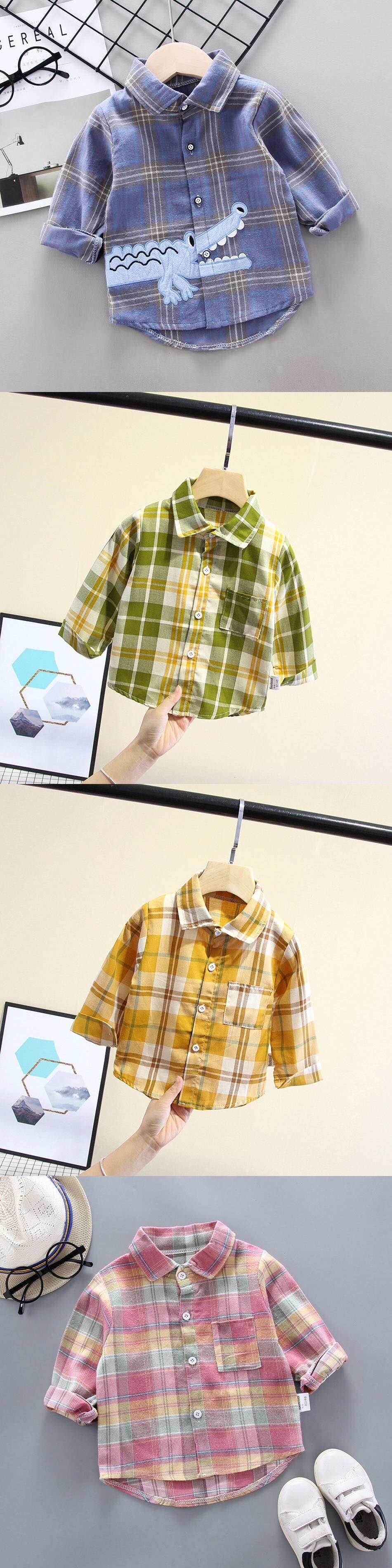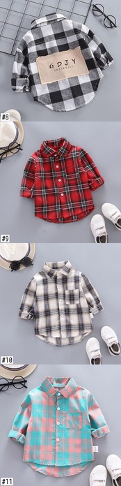 新作 幼児ベビーシャツ漫画の服春幼児少年格子縞のコットントップス 1 2 3 4 5 年子供長袖シャツ