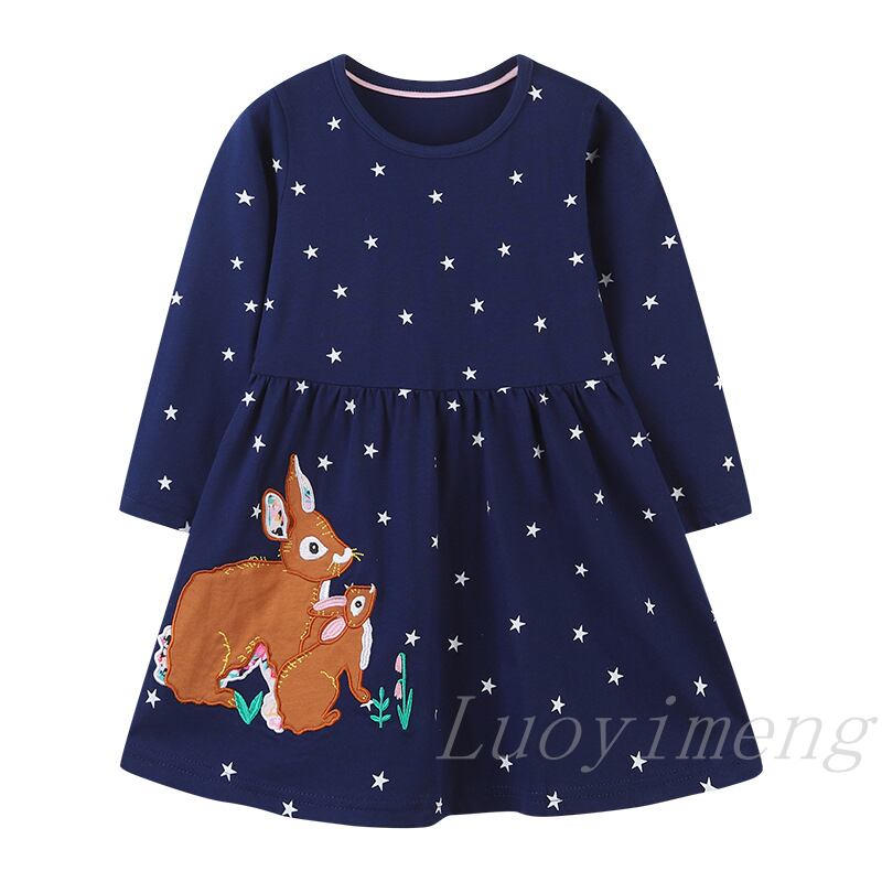 新作 2022 幼児の女の赤ちゃんの漫画のウサギのドレス子供長袖ドットスターパーティードレス 2-7Y 子供の