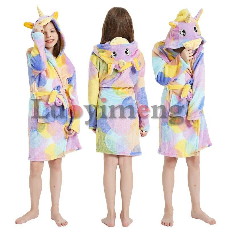 新作 着ぐるみ動物バスローブ少年少女パジャマ Onesies 子供のフランネルフード付きビーチタオルローブ子供ドレッシングガウン