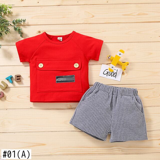 新作 2点セット 3-18M生まれ 幼児 子供 男の子 女の子 半袖+ショーツ ポケット ゴムウエスト