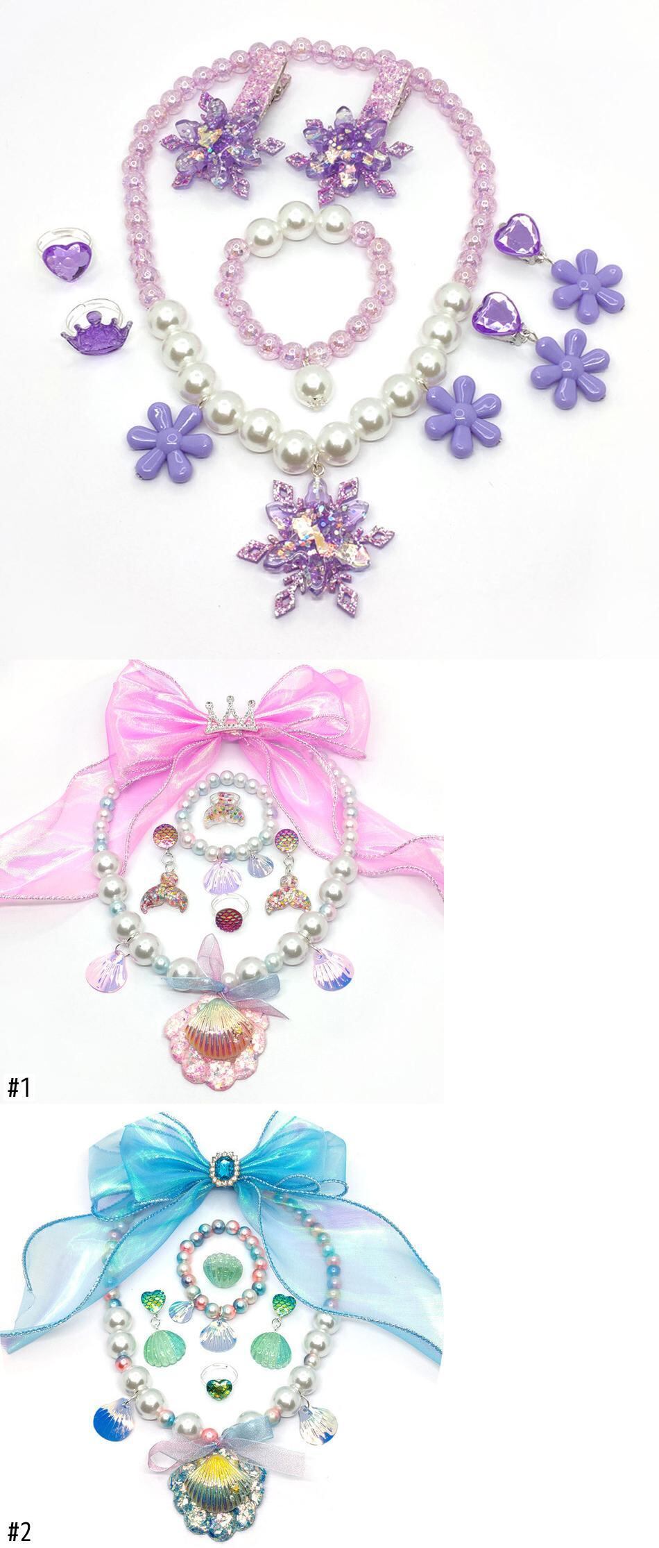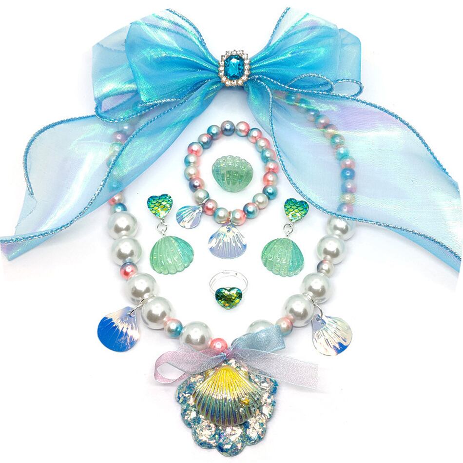 新作 女の子リトルマーメイドパーティーアクセサリーネックレスリングイヤリングブレスレット子供のおもちゃ子供の誕生日プレゼントエルザカチューシャ