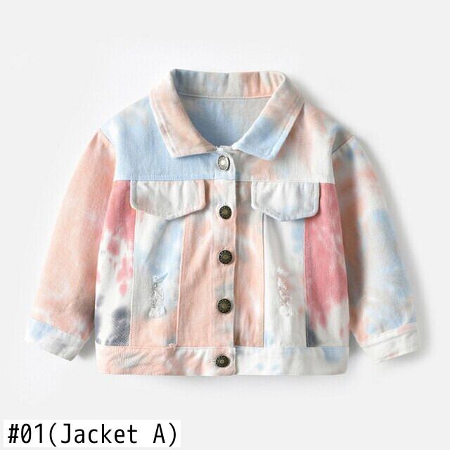 新作 2022 春秋の幼児女の子 Tiedye デニムジャケットリトルキッズボーイコート子供の上着トップス 1-8 年