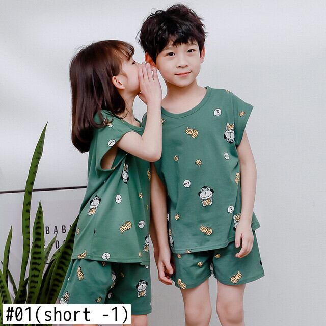 新作 子供パジャマ夏ガールズボーイズパジャマナイトウェアベビー幼児服動物漫画パジャマセット綿子供のホームパジャマ