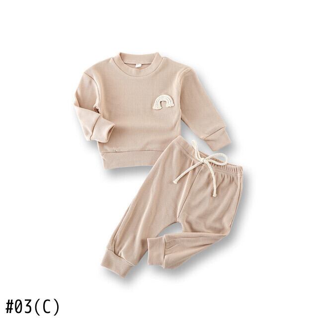 新作 ベビー ガールズ ボーイズ 無地 お洋服セット レインボー 刺繍 長袖 Oネック トップス 巾着 ウエスト ロングパンツ