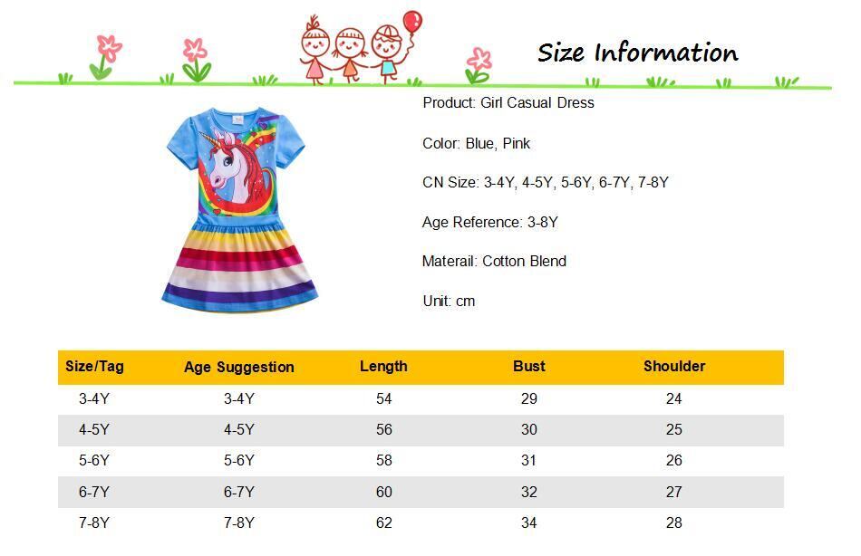 新作 キッズユニコーンコットンストライプ漫画レインボーサマードレスガールズインファンティル子供Vestidos