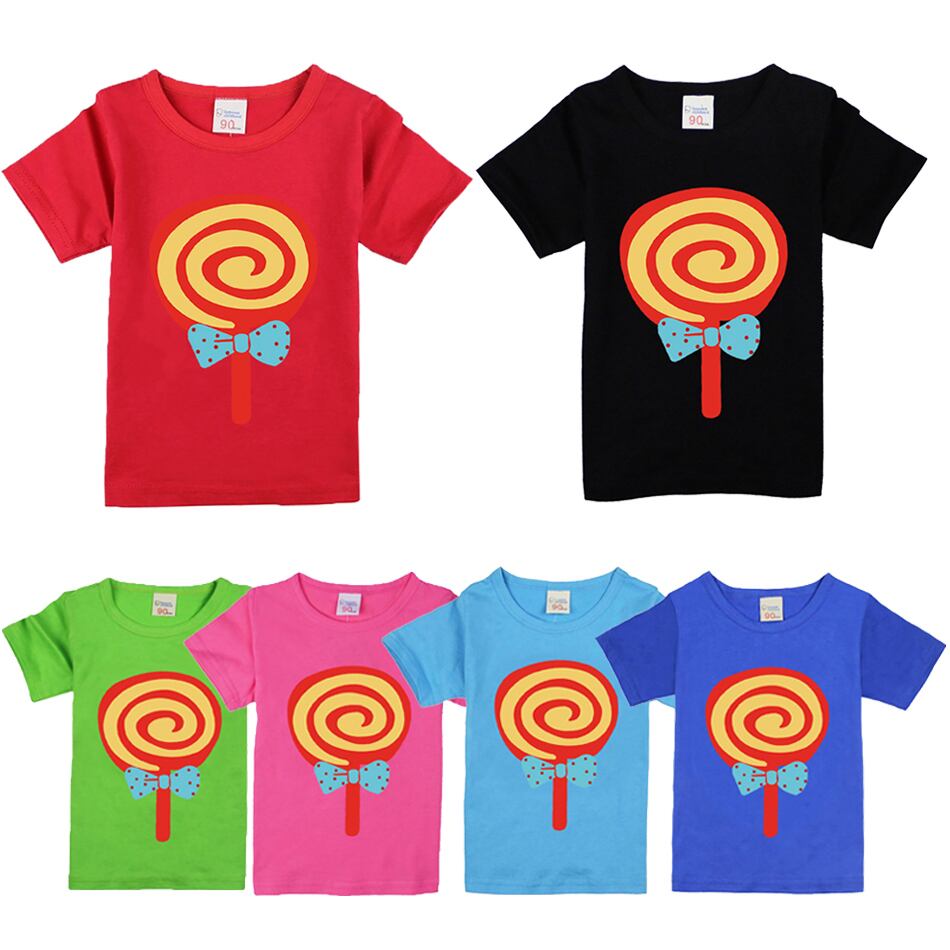 新作 1-12 歳の子供キャンディーロリポッププリント子供 Tシャツコットン夏トップス Tシャツベビー Tシャツブラウス服