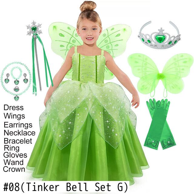 新作 ドレッシーピクシーフェアリーコスプレドレスアップガールズティンカーベル幼児キッズカーニバル Vestidos ガウン