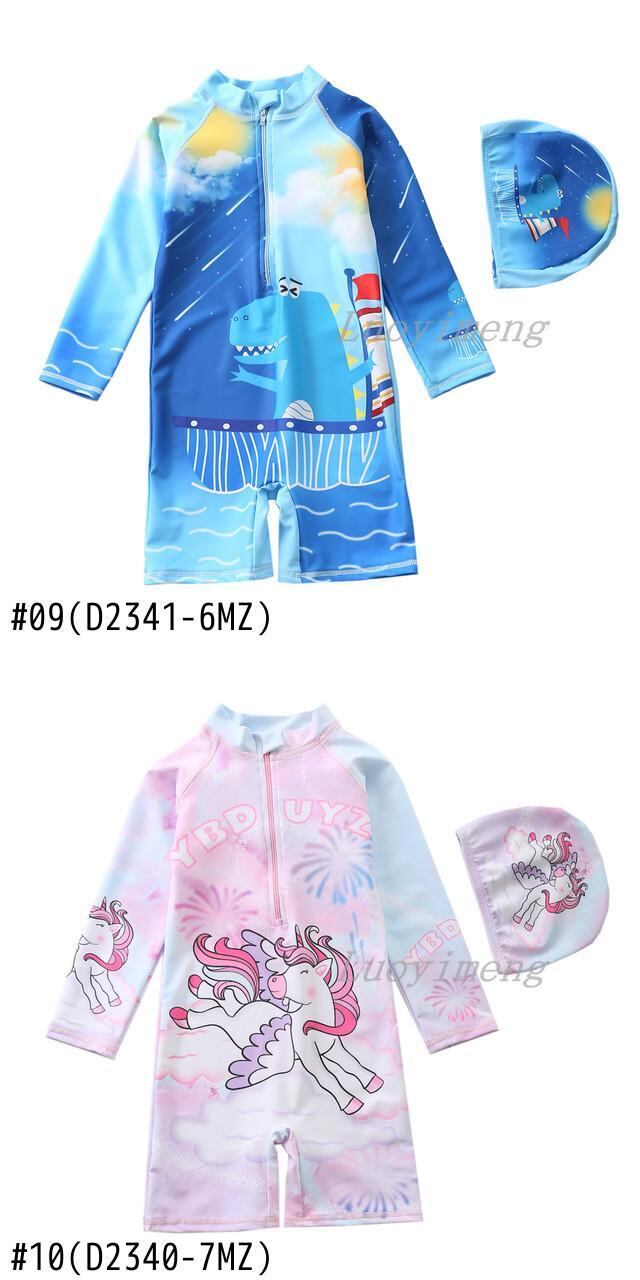 新作 女の赤ちゃん水着帽子付き子供服水着クマフルスリーブ水着子供水泳衣装ボーイズビーチウェア