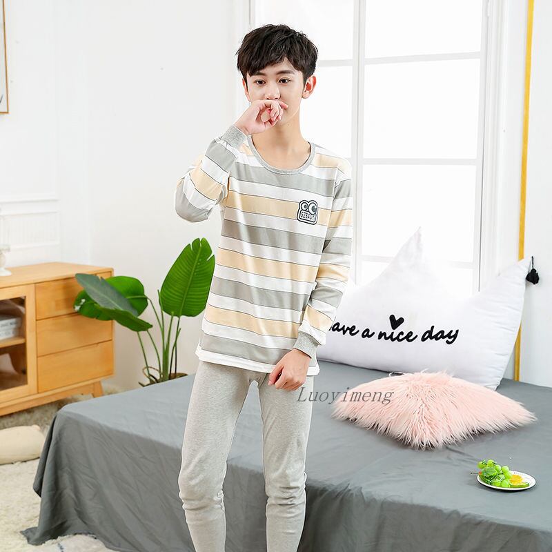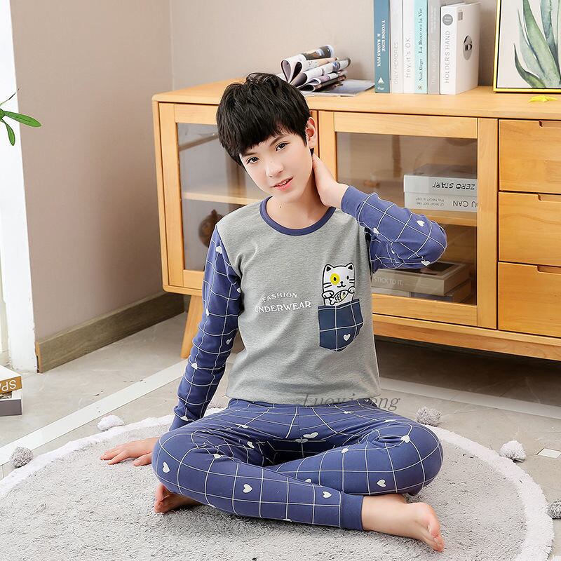 新作 秋のパジャマセット十代の少年たちの綿のパジャマスーツパジャマビッグボーイズ服クリスマス服セット 12 14 16 18T ナイトウェア