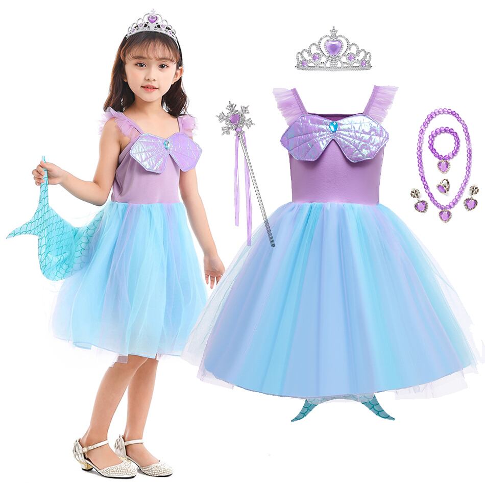 新作 女の子アリエルドレス幼児マーメイドテール夏ファンシー妖精誕生日ドレス女の子かわいい服 1-6 t