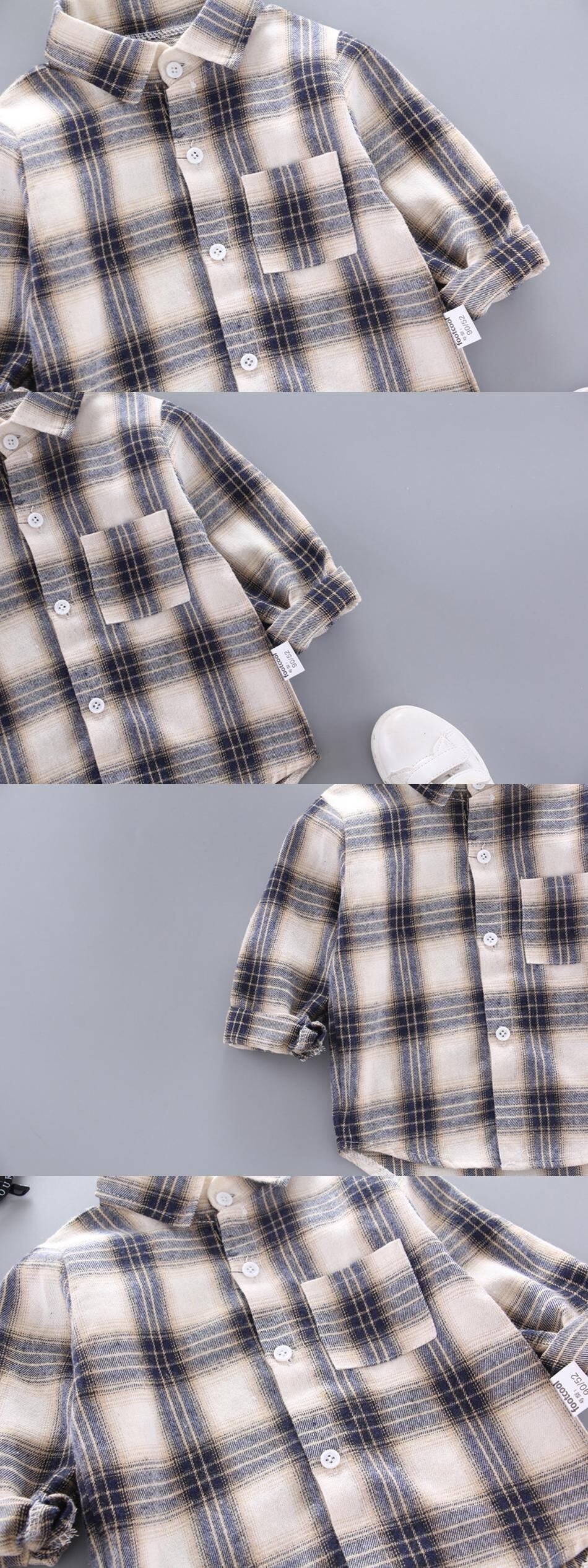 新作 春秋の男の赤ちゃん服キッズガールズシャツ長袖学校服チェック柄コットンターンダウン襟ボタントップス
