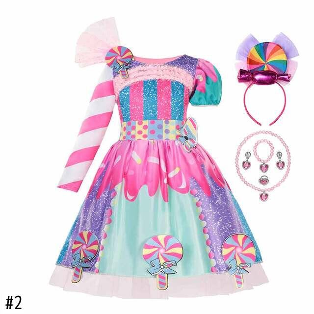 新作 Muababy 杖キャンディーカーニバルドレス女の子甘い愛らしいロリポップコスプレ夏 Frocks 子供の誕生日ファンシークルクルローブ
