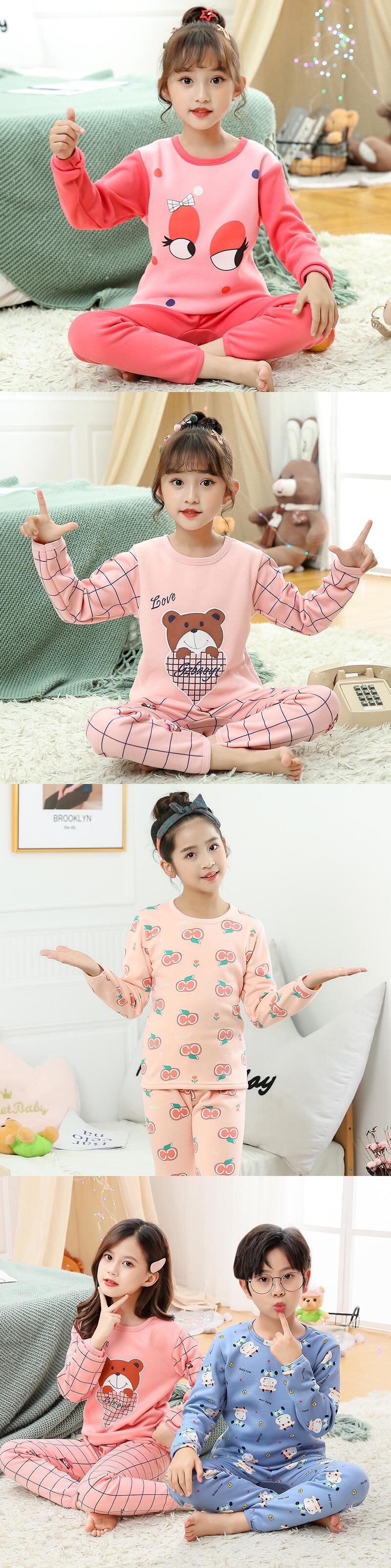 新作 女の子パジャマ冬の子供の厚みの長袖スパースター男の子パジャマ漫画パジャマセット子供ホームウェア