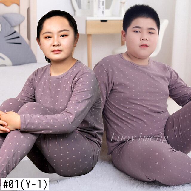 新作 綿の漫画パジャマセット子供の少年少女プラス衣装着用脂肪子供パジャマ長袖肥満十代の若者たち Pijamas