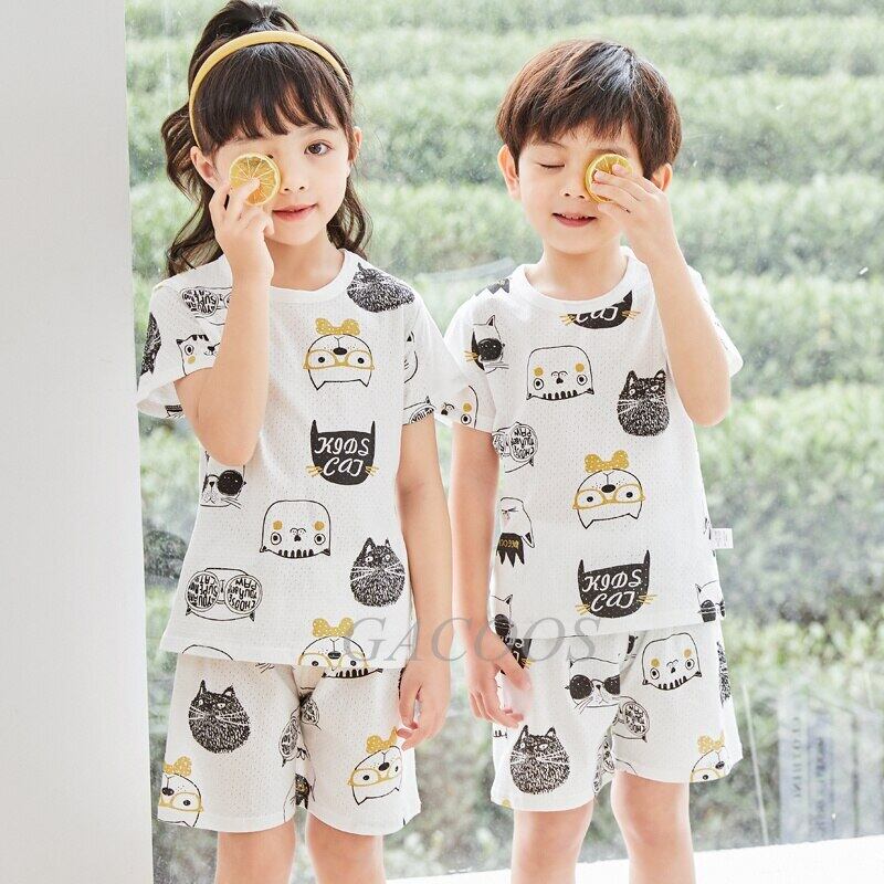新作 夏の男の子服子供パジャマベビーカーパジャマ子供セット T-たわごと + パンツ綿パジャマ女の子十代の若者たち 4 6 8 12Y