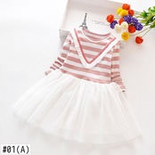 新作 春の子供女の子ストライプ メッシュ ドレス長袖パッチワーク弾性服 1-9T ニット ピンク ブラック