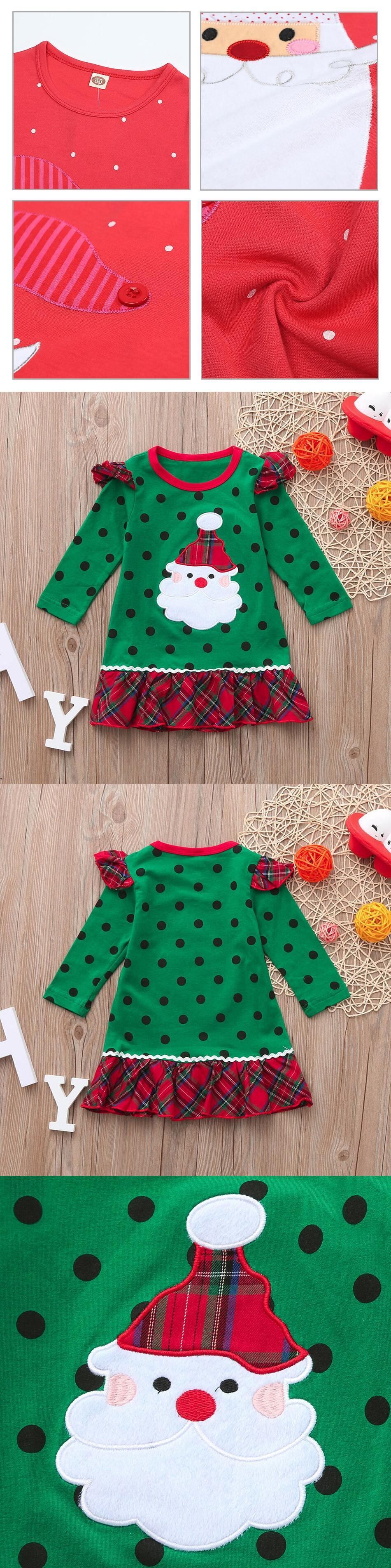 新作 ガールズ クリスマステーマ 長袖 クリスマスツリー プリント レースドレス 雪だるま サンタ衣装 Vestido サンタクロース ニット 冬