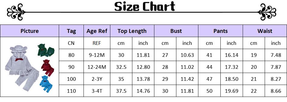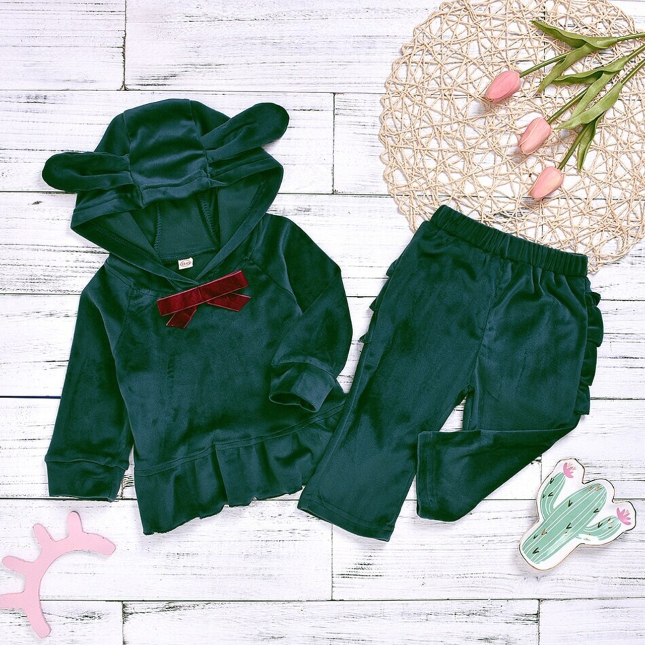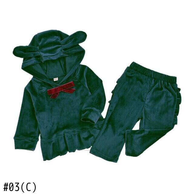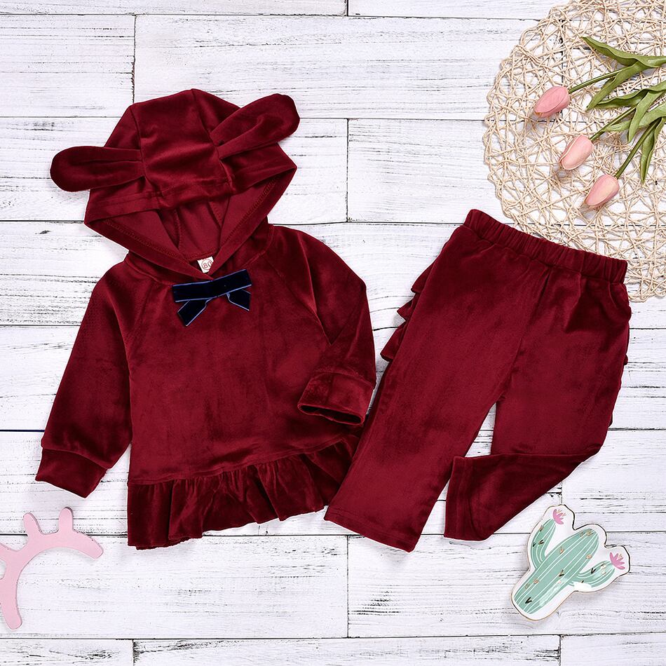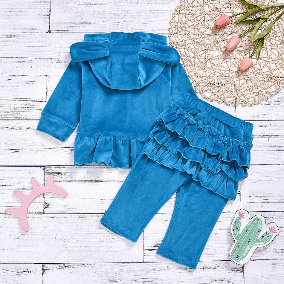 新作 漫画のベルベットのスポーツスーツ Eear フリルキッズ子供セット秋冬ガールズベビー 2 個のスーツ