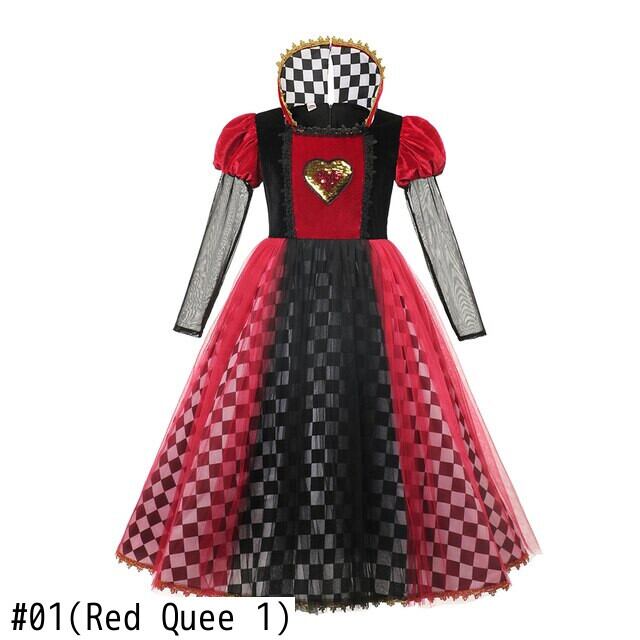 新作 赤の女王コスプレドレス女の子クリスマスパーティーカーニバル子供不思議の国のアリス
