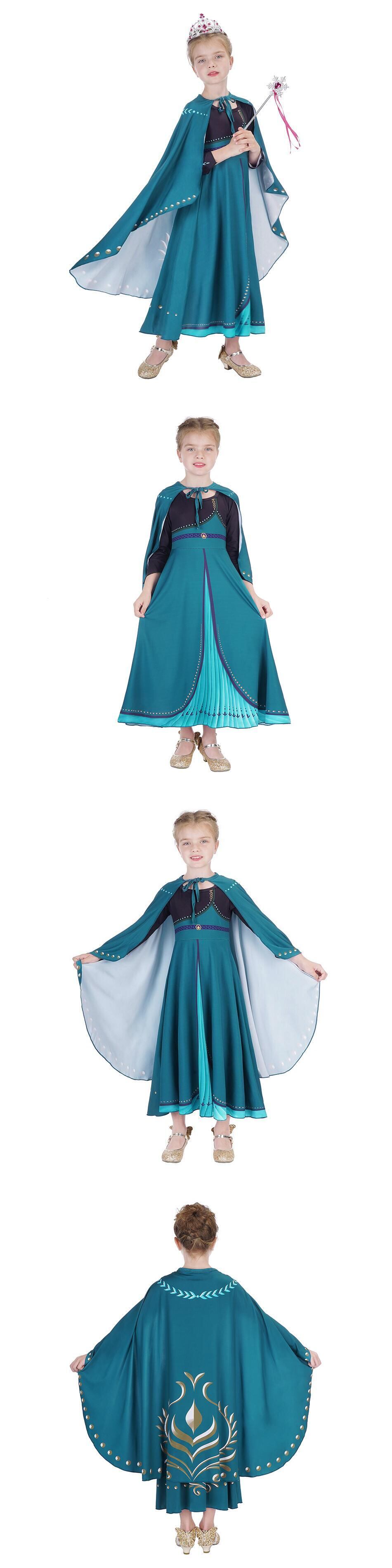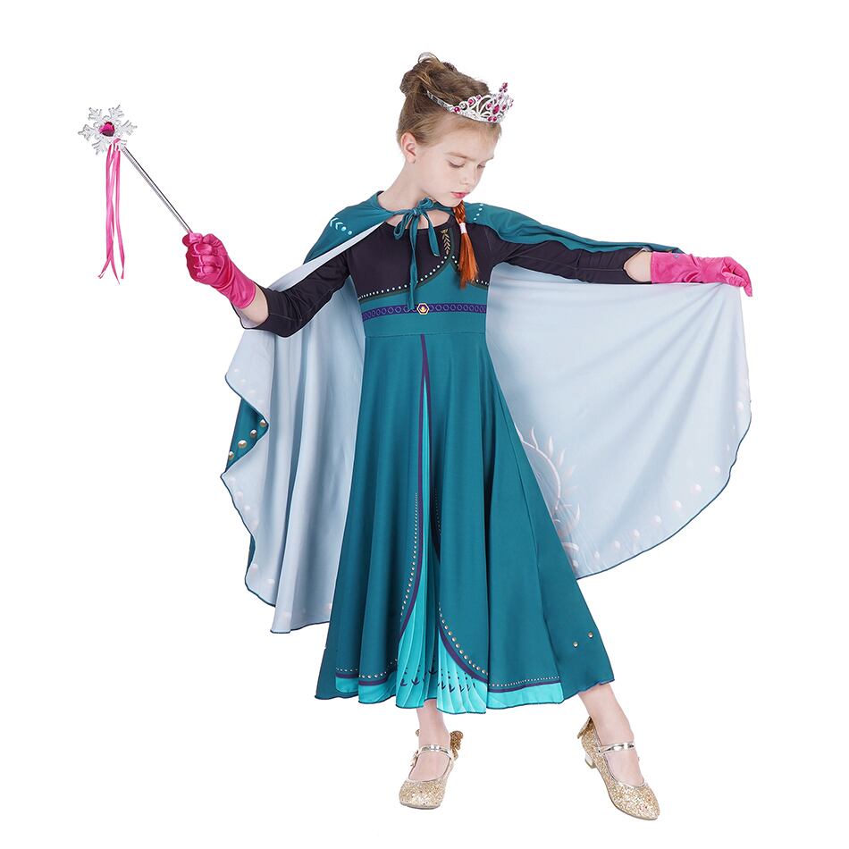 新作 キッズアンナコスプレドレスガールアナと雪の女王 2 ブルーと王冠ステッカー手袋カーニバルパーティー Brithday ロング s JYF