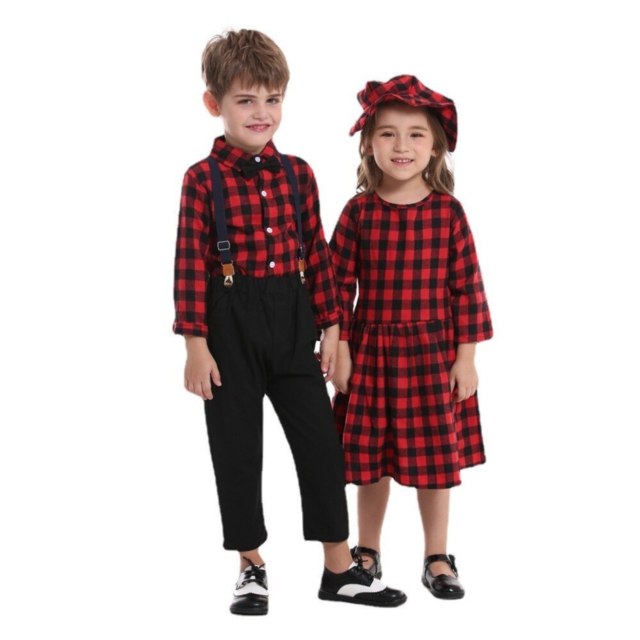 新作 秋冬クリスマス兄弟姉妹マッチングセット男の子紳士スーツ + 女の子ドレス帽子子供セット