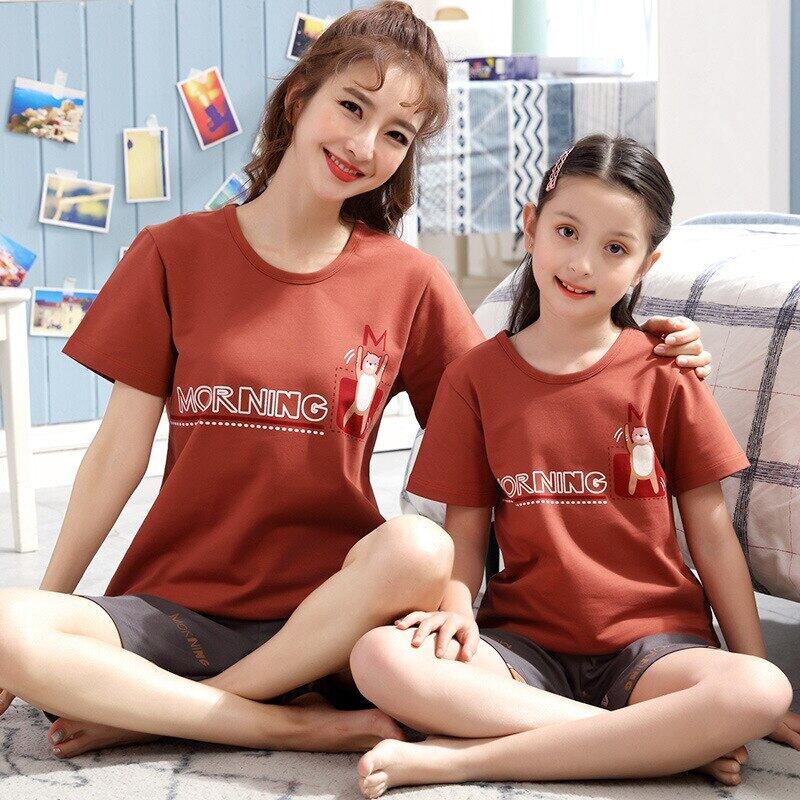 新作 ママと娘のマッチング服夏ショーツセット母子供半袖パジャマ女の赤ちゃんホームウェアナイトガウン