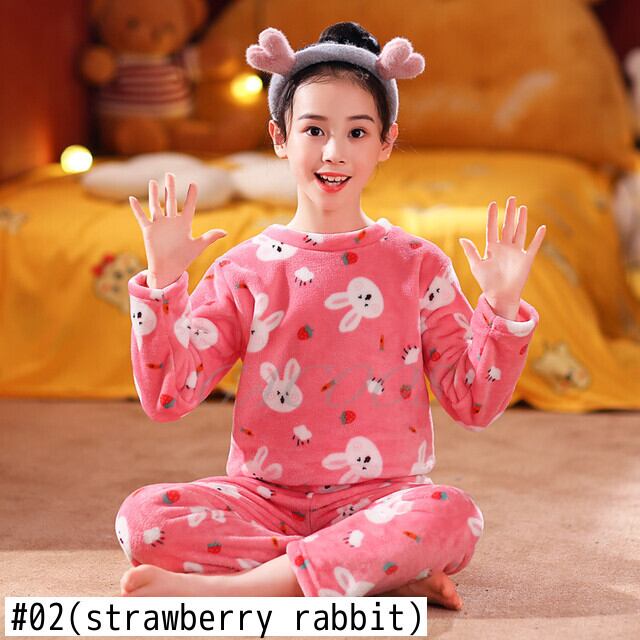 新作 子供のパジャマセット少年少女漫画パジャマ冬フランネルパジャマホーム服キッズナイトウェアティーンセット