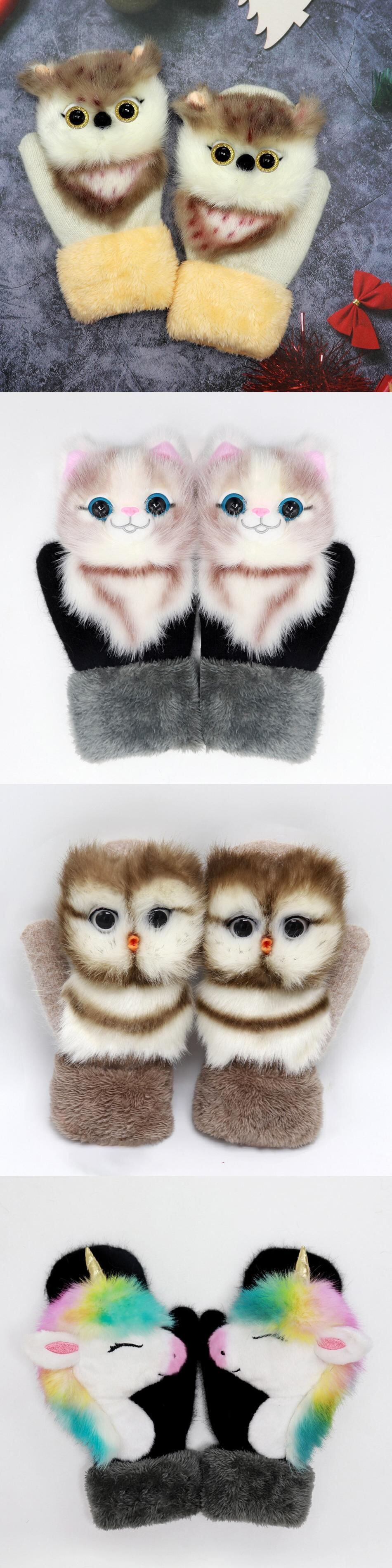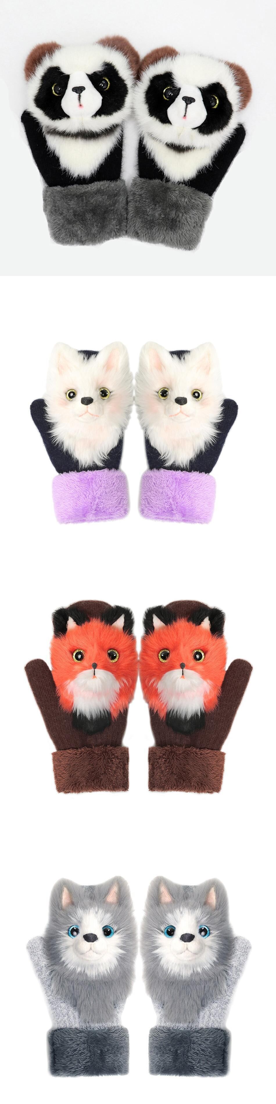 新作 動物猫犬パンダハスキーユニコーンキツネ子供冬暖かいロングかわいい女の子ミトン指ソフト手袋 10T 女性