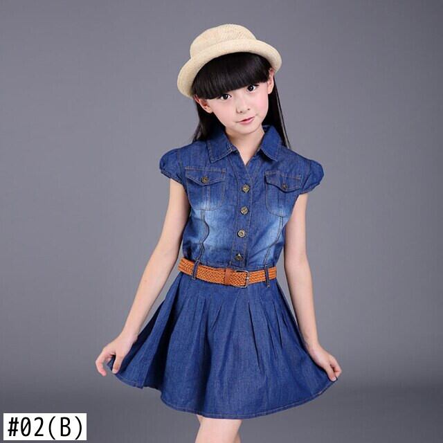 新作 キッズ カウボーイ ドレス ガールズ サマー デニム ビッグ キッズ ベルト ドレス ガール ティーンエイジ Vestidos ビーチ パーティー JYF